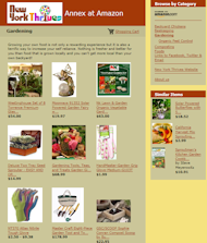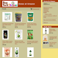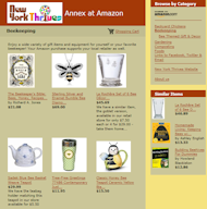 Amazon - You can't beat Amazon.com for variety and convenience. Since it has turned out to be one of our biggest competitors we decide "if you can't beat 'em, join em" and so we did. We have put a lot of thought and time into setting up our "a store" to showcase items we think our customers will wnat and enjoy. If you go directly to Amazon.com, you will not be able to benefit from our wonderful selection of prescreened merchandise so next time you are considering a purchase OF ANYTHING from Amazon, we'd appreciate you originating you visit from our store - visit the New York Thrives Annex at Amazon.